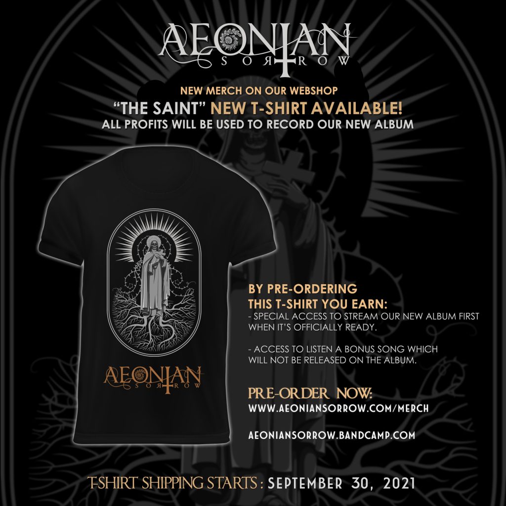 If you want to support our goal here you can pre-order “The Saint” t-shirt on our Bandcamp Shop aeoniansorrow.bandcamp.com or through our website here!